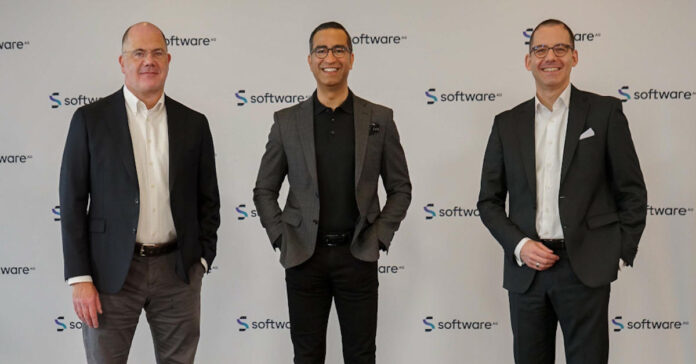 Produktvorstand Stefan Sigg, CEO Sanjay Brahmawar und CFO Matthias Heiden (von links) wollen die wiederkehrenden Umsätze der Software AG ausbauen. Foto: Software AG