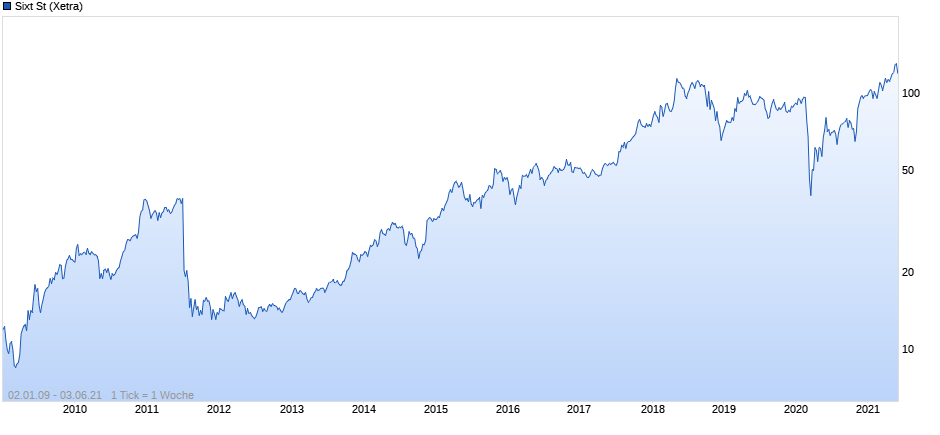 Das Erbe, das Bremer antritt, ist gewaltig. Unter Putlitz hat Sixt eine herausragende Entwicklung am Aktienmarkt genommen. Seit dem Amtsantritt des CFOs 2009 ist der Aktienkurs zwischenzeitlich um nahezu das vierzehnfache von 8 auf über 108 Euro Ende September gestiegen. Der Kursrutsch der vergangenen zwei Wochen hinterließ auch Spuren bei Sixt, aktuell notiert das Papier bei knapp 88 Euro.