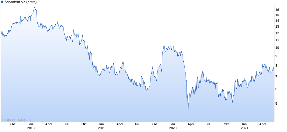 Doch seitdem erholt sich die Aktie: Allein heute gewinnt sie 10 Prozent auf 8,70 Euro, weil die gleichzeitig mit Heinrichs Weggang verkündeten Quartalszahlen nicht so schlecht ausfielen wie befürchtet. Allerdings gehört zur Einordnung von Heinrichs Bilanz auch die Tatsache, dass die Papiere der meisten anderen Autozulieferer sich seit Mitte 2017 noch schlechter entwickelten als die Schaeffler-Aktie.