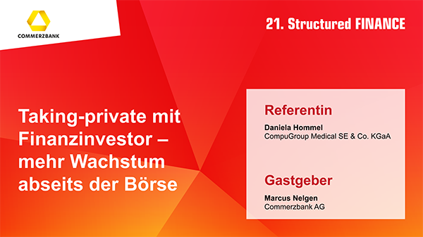 Finanzierung, M&A, Digitalisierung und Nachhaltigkeit – CFOs und Treasurer haben viele Themen auf der Agenda. Im Content-Hub zur Structured FINANCE, der Leitveranstaltung für moderne Unternehmensfinanzierung, bieten Mitschnitte von Podiumsdiskussionen und Roundtables aus den Jahren 2020/21 und zahlreiche Texte aus der Feder von Top-Experten aus Banken, Kanzleien, Softwareunternehmen und Beratungen einen schnellen und einfachen Überblick zu diesen Themen.